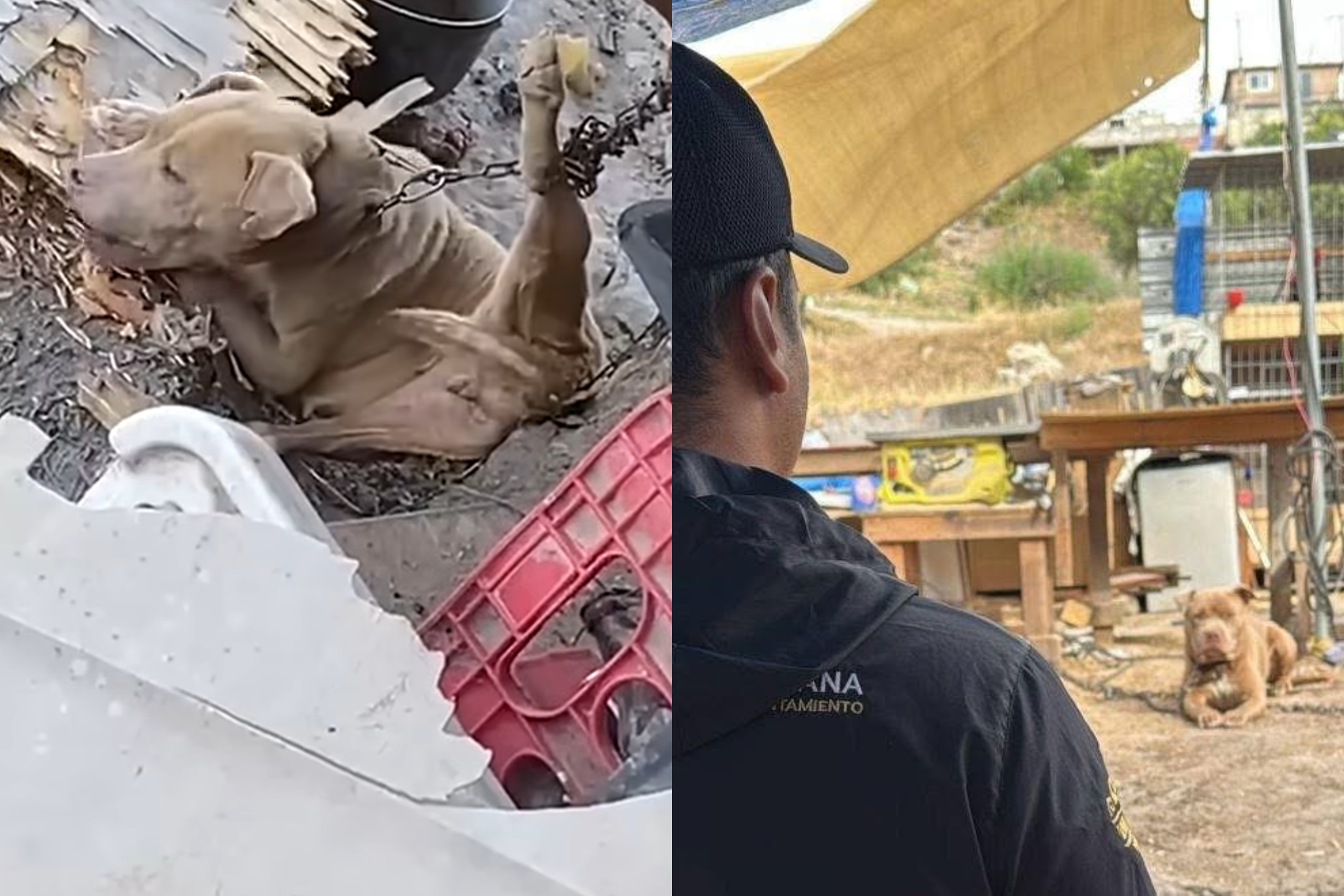 Rescatan a perrito que quedó con la pata atorada en su cadena en Los Alcatraces Tijuana