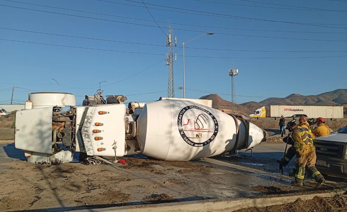 Una revolvedora de concreto volcó la tarde de este miércoles sobre el bulevar 2000, en el tramo que conduce de Rosarito hacia Otay, a la altura del puente vehicular de la carretera libre Tijuana-Tecate sin que se reportaran personas lesionadas.