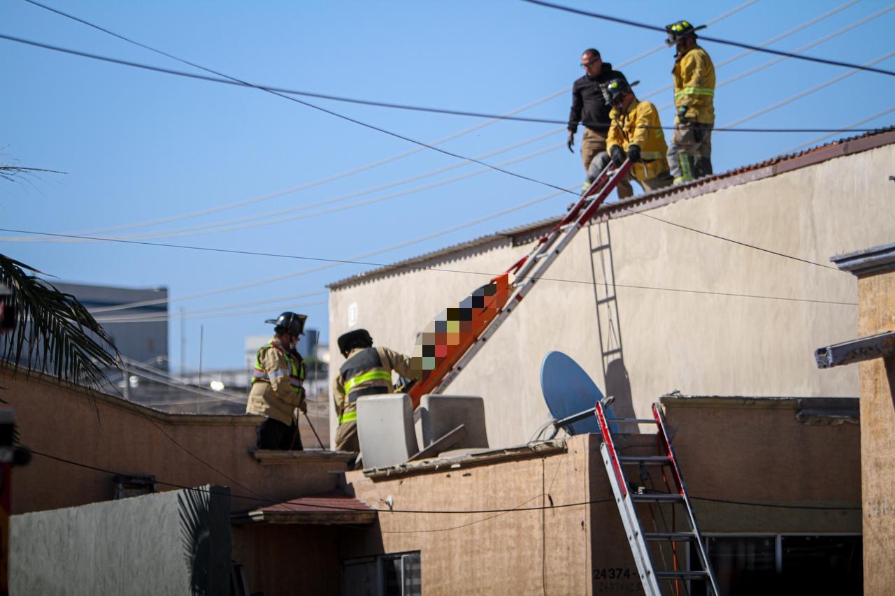 Elementos del Cuerpo de Bomberos también arribaron al sitio para llevar a cabo las maniobras necesarias y recuperar el cuerpo desde el techo de la casa.