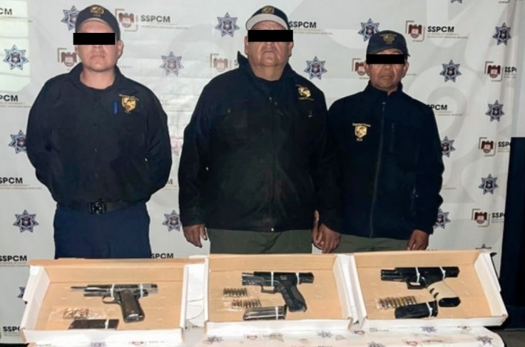 Durante la inspección, a cada uno de los detenidos se le localizó un arma de fuego tipo escuadra, lo que derivó en su aseguramiento inmediato.