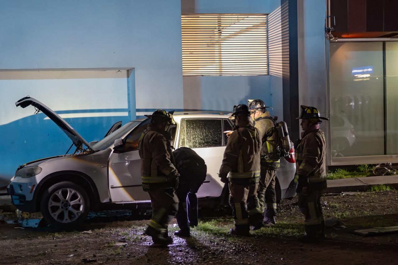 Elementos del Cuerpo de Bomberos, tras recibir el reporte de un vehículo en llamas, se movilizaron hasta un callejón ubicado a espaldas de la Plaza Financiera, que conecta con el bulevar Paseo de los Héroes, donde habría ocurrido el hecho.