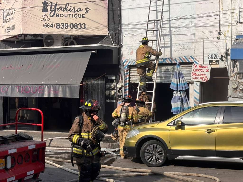 Un conato de incendio se registra esta tarde en negocios comerciales ubicados sobre la calle Primera, entre Niños Héroes y Constitución, en la zona Centro de la ciudad.