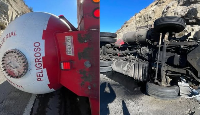 La mañana de este jueves se registró una volcadura de una pipa de gas en la autopista descendente del Hongo a Tecate, a la altura del kilómetro 107.