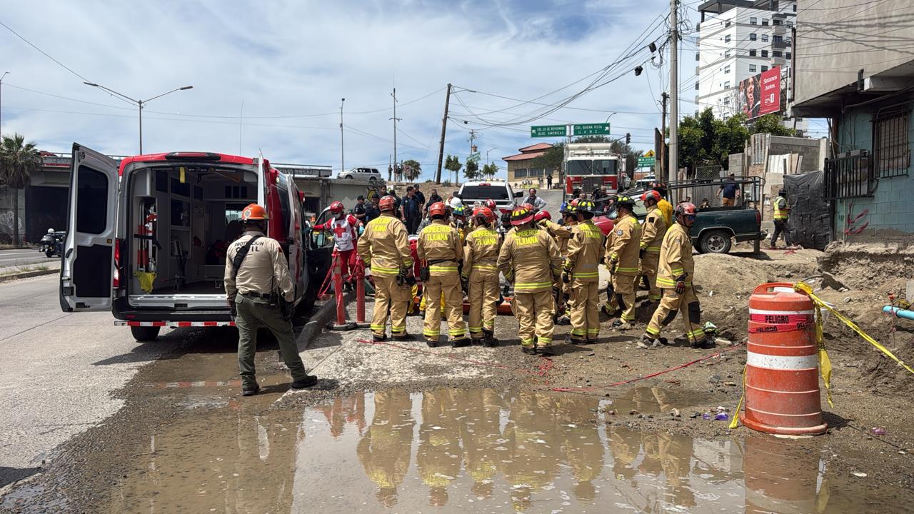 Dos trabajadores quedaron atrapados tras un colapso de tierra cuando estaban laborando en una zona de construcción sobre Vía Rápida Poniente y puente de las Américas a la altura de la colonia Buena Vista.