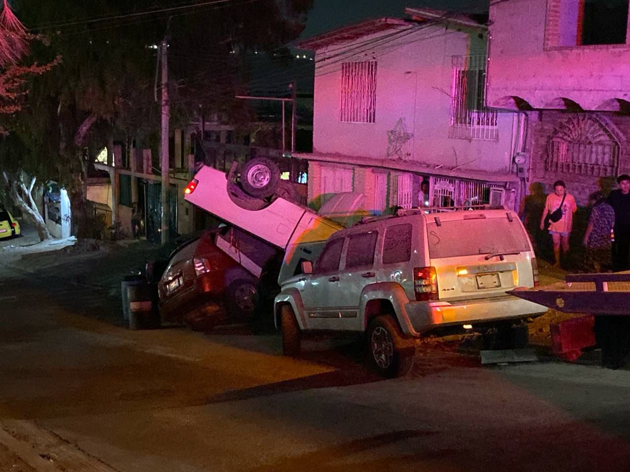 Una camioneta Pick Up Ford Ranger protagonizó una aparatosa volcadura la noche del lunes 25 de agosto en la calle El Sauce, esquina con avenida Gardenia, en la colonia La Morita. El percance dejó como saldo al menos cuatro vehículos dañados y una pareja con lesiones leves.