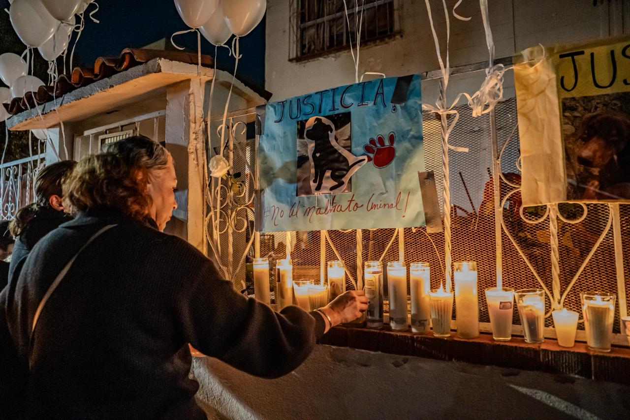 La vigilia se realizó con veladoras encendidas, globos blancos y mensajes de despedida. Durante el encuentro se precisó que el canino, identificado inicialmente como “La Chatita”, era en realidad macho, motivo por el cual se decidió nombrarlo públicamente como “El Chato”, dándole identidad dentro de la exigencia de justicia.