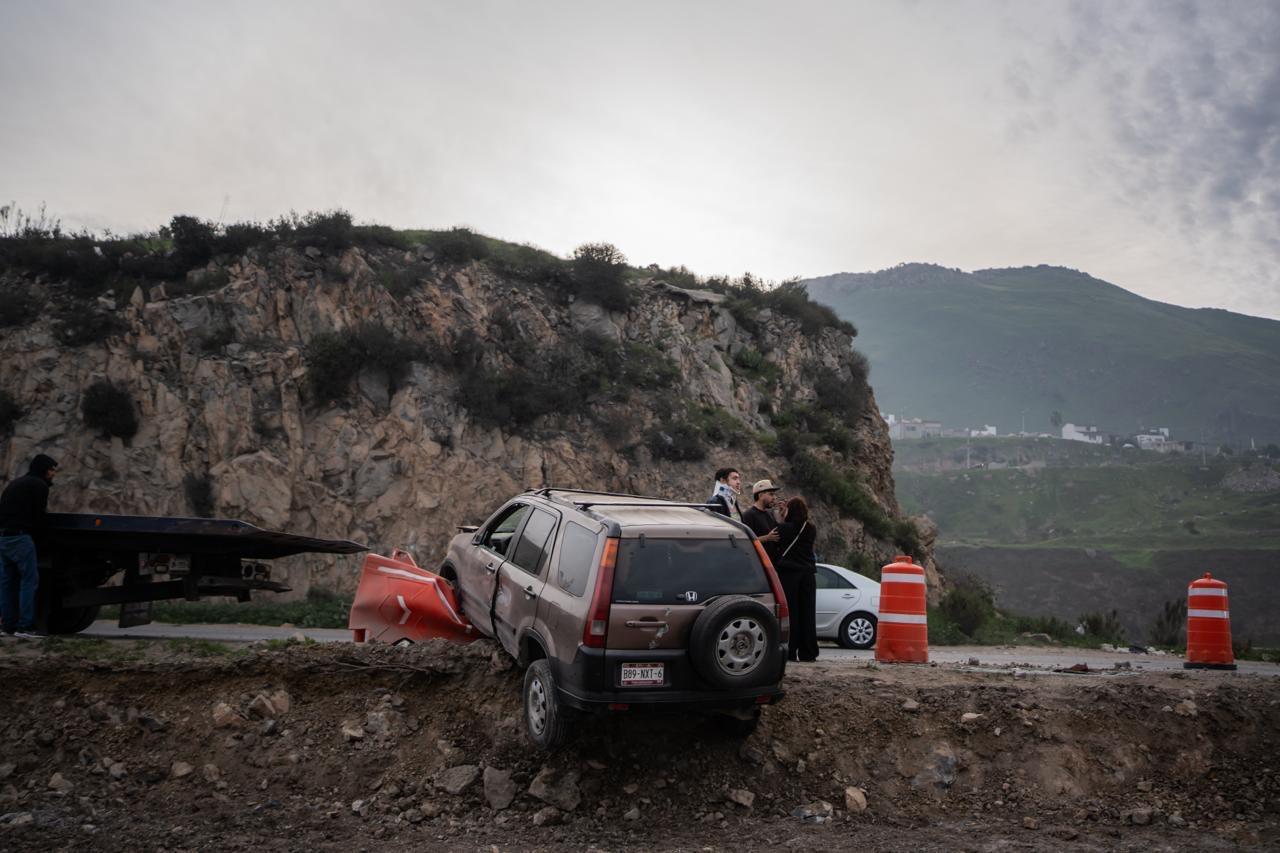 De acuerdo con información preliminar, el percance ocurrió cuando la camioneta Honda CR-V circulaba en dirección hacia Otay. En ese momento, un camión tipo dompe intentó cambiar de carril de manera intempestiva, impactando a la camioneta y provocando que esta terminara volcada.