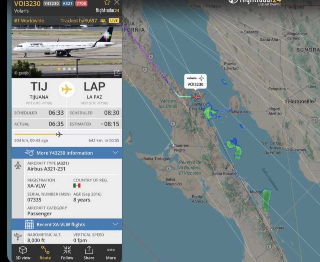 La mañana del lunes 1° de septiembre, un vuelo de Volaris (VOI3230) que cubría la ruta entre Tijuana y La Paz registró un descenso inesperado hasta los 8 000 pies, lo cual activó inmediatamente los protocolos de emergencia.